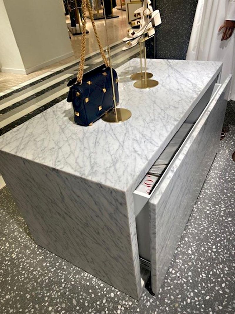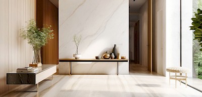 Werkstoffe wie Naturstein, Keramik und Quarzstein finden sich in Küchenarbeitsplatten, Theken, Rückwänden, Esstischen, Fensterbänken, Bodenplatten, Waschtische, Duschtassen – und Wänden, Arbeitstischen wieder.